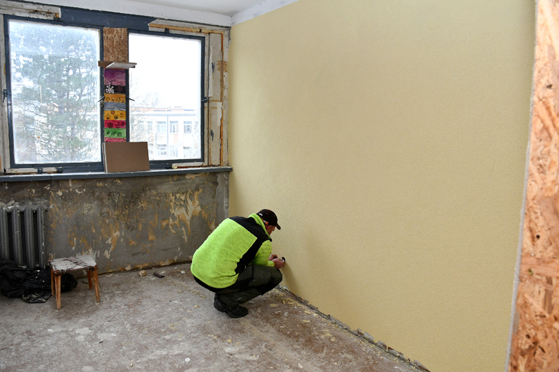 Lai pielāgotu daļu Saulaines dienesta viesnīcas 4. stāva Ukrainas civiliedzīvotāju izmitināšanai, telpās jau kopš gada sākuma norit remontdarbi. Lielākā daļa dzīvokļu jau atbrīvoti no vecā «mantojuma» un sākti būvdarbi, piemēram, sienu un griestu apmetuma remonts.