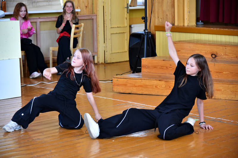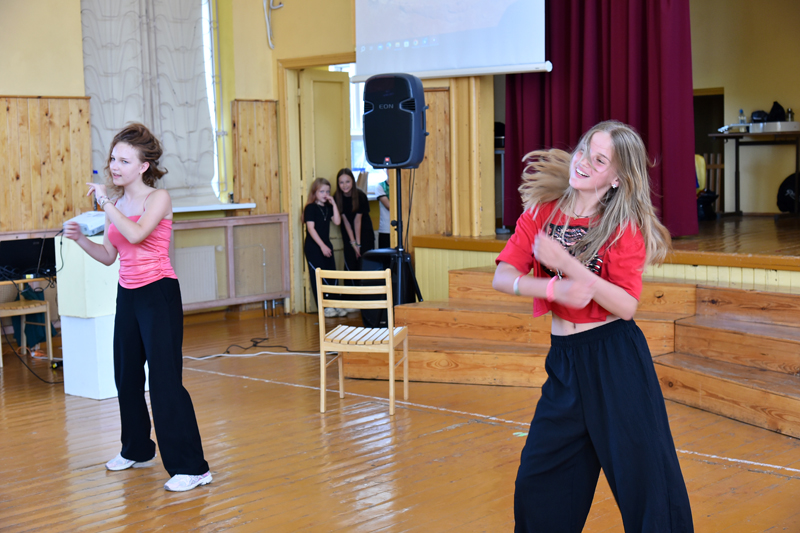 Brīvprātīgā Evelīna Griška pati pieteikusies darboties nometnē, jo viņai patīk komunikācija ar bērniem. «Man patīk fotografēt, filmēt un montēt ar telefonu. Pēdējā dienā ir mazliet skumīgi, jo sadraudzējos ar brīnišķīgu ukraiņu meiteni Poļinu, mēs labi parunājāmies. Pirms tam krievu valodu nezināju, bet divās nedēļās iemācījos, runājām arī angliski,» atklāj iecavniece Evelīna, kura mācīsies Iecavas pamatskolas 9. klasē.