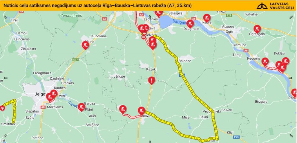 Šodien, 15. augustā, noticis smags ceļu satiksmes negadījums uz Bauskas šosejas (35km), satiksme negadījuma vietā bloķēta, liecina uzņēmuma “Latvijas Valsts ceļi” publicētais paziņojums mikroblogošanas vietnē “Twitter”. Apbraukšana iespējama pa autoceļiem Iecava–Stelpe (P92) un Ķekava–Skaistkalne (P89).