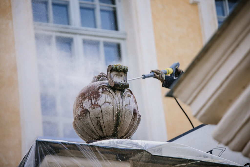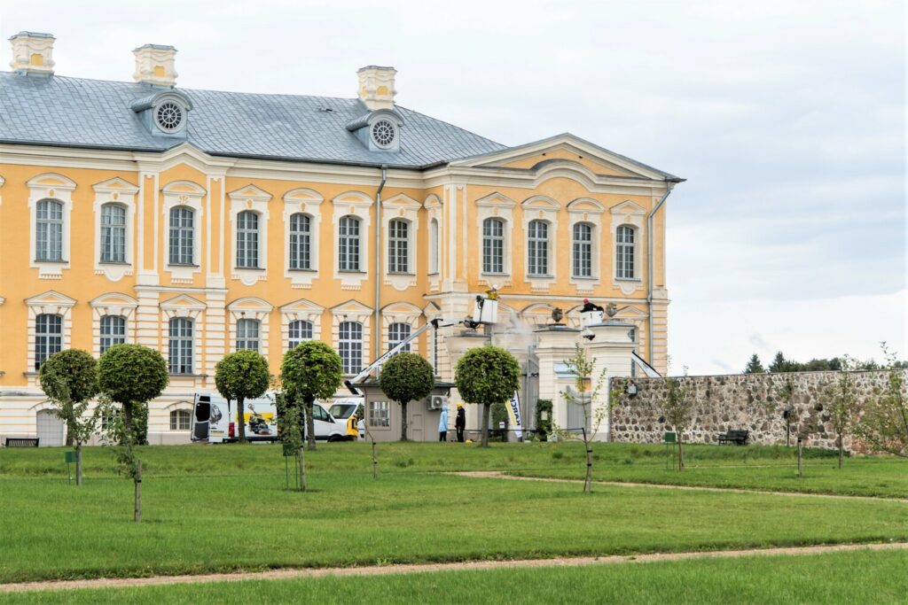 Pagājušajā nedēļā uzņēmums “Kärcher” veica tīrīšanas darbus Rundāles pils franču dārza ieejas vārtu skulptūrām – vāzēm – kas ir rekonstruētas pēc oriģinālo vāžu parauga un uzstādītas 2010.gadā. Akmens vāžu virsma tika attīrīta no mikrobioloģiskā un ārējās vides piesārņojuma, izmantojot īpaši piemeklētas iekārtas un specializētus tīrīšanas līdzekļus. Tīrīšanas projekta ietvaros uzņēmums ieguldīja vairāk nekā 2000 eiro, portālu informēja uzņēmuma pārstāve Maija Sadauska.