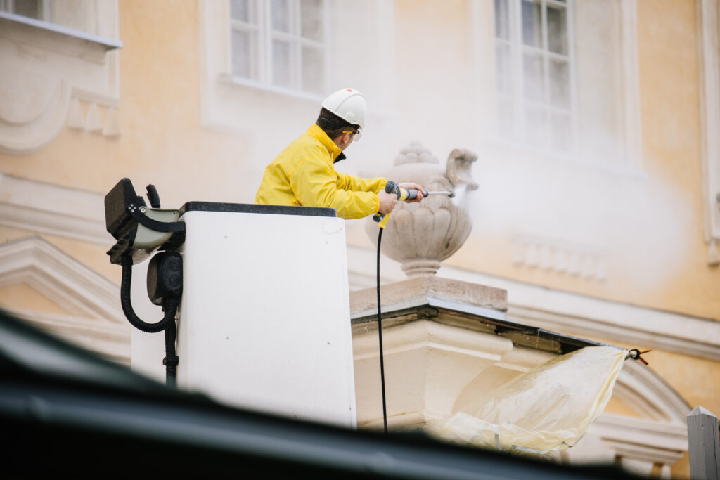 Lai nodrošinātu vissaudzīgāko metodi, tai pat laikā sasniegtu maksimālu rezultātu, tīrīšanas darbiem tika izmantota speciāli izvēlēta tehnika: jaudīgs karstā ūdens augstspiediena tīrītājs ar spēcīgu četrtaktu dīzeļa dzinēju, augstspiediena tīrīšanas iekārta, kas darbojas arī bez pieslēguma elektrotīklam. Izmantojot profesionālu tvaika tīrītāju tika atsvaidzināts sanitārais mezgls, bet ar augstpiediena ūdens un smilšu strūklas ierīci tika noņemts rūsas slānis no izrakumos atrastiem metāla priekšmetiem.