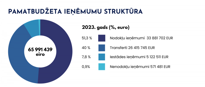 Budžets plānots 94,3 miljoni eiro, to skaitā pamatbudžeta ieņēmumi gandrīz 66 miljoni eiro, aizņēmumi – 14,1 miljoni eiro, atlikums gada sākumā – 14,2 miljoni eiro.