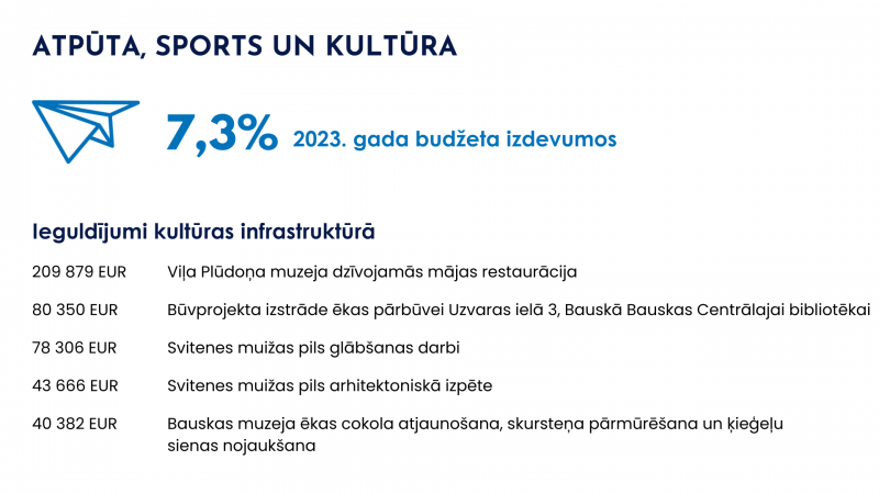 Atpūtas, sporta un kultūras pasākumiem plānoti 6,6 miljoni eiro.
