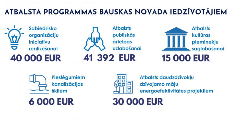 Arī šogad tiek atbalstīta iedzīvotāju grupu un nodibinājumu iniciētu ideju īstenošana publiski pieejamu teritoriju labiekārtošanai, pilnveidošanai un uzlabošanai, veicinot drošas un sakārtotas vides veidošanos pašvaldības teritorijā. Viena projekta īstenošanai iespēja saņemt līdzfinansējumu līdz 2000 eiro, bet kopējais šajā gadā paredzētais finansējums ir 41 392 eiro.