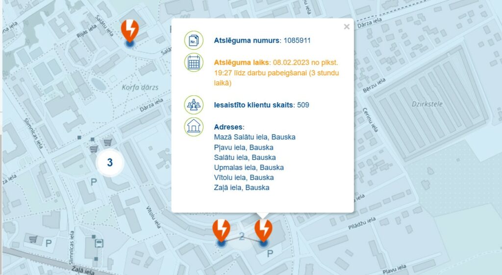 Uzņēmums paziņojis, ka Bauskā ir konstatēts elektrotīklu bojājums. Elektroapgādi plānots atjaunot trīs stundu laikā.