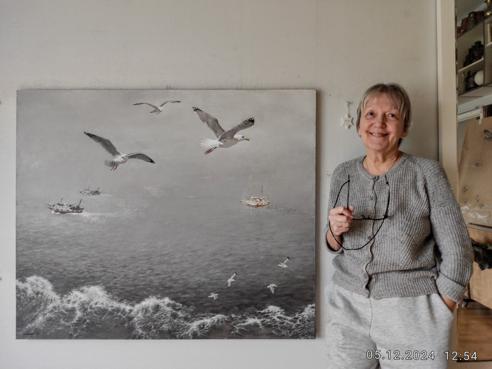 “Piektdien, 6.decembrī, ir tēlotājmākslas meistares 70.dzimšanas diena. Mēs esam kopā ar viņu, šķiet, tieši tajā mirklī, kad skaistais kruīza laineris iziet jūrā un no kajītes balkona vērojam rosīgos zvejas kuģīšus un puspieradinātās ostu kaijas, kas lidinās tuvumā, lai noķertu pasažieru mestos maizes gabaliņus. Patiesi var sajust pelēkās jūras šalkoņu, vēja pieskārienus sejai un dzirdēt varenā lainera taures rēcienu uz atvadām.