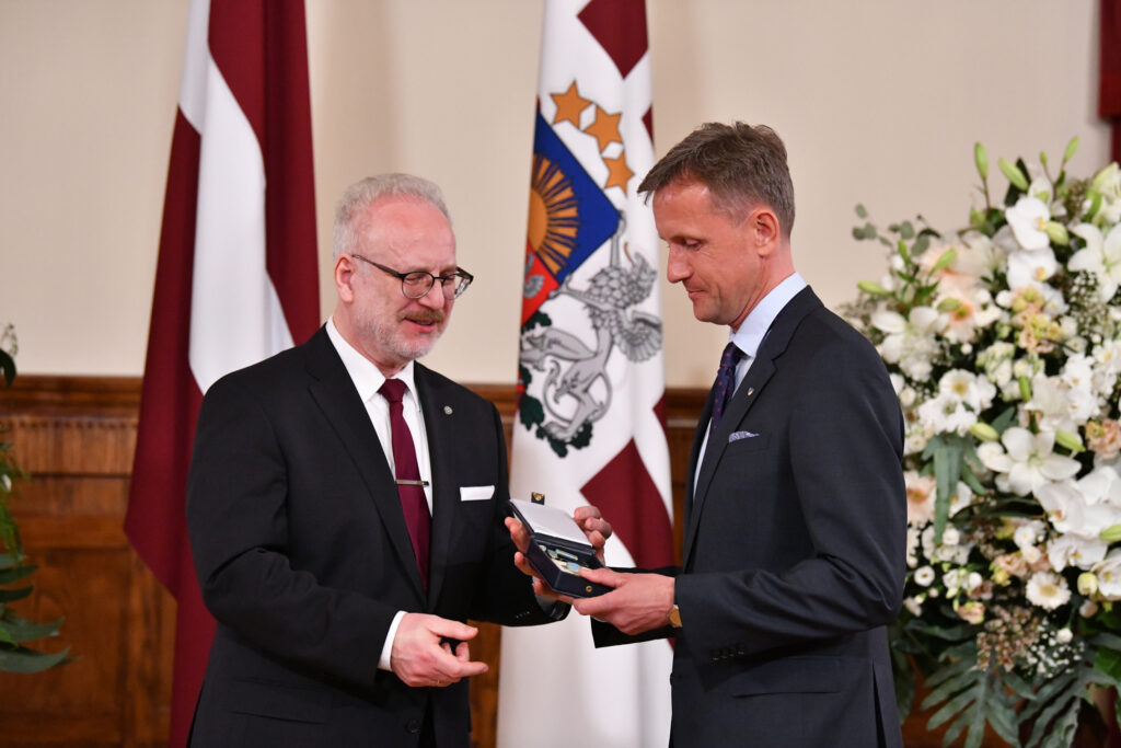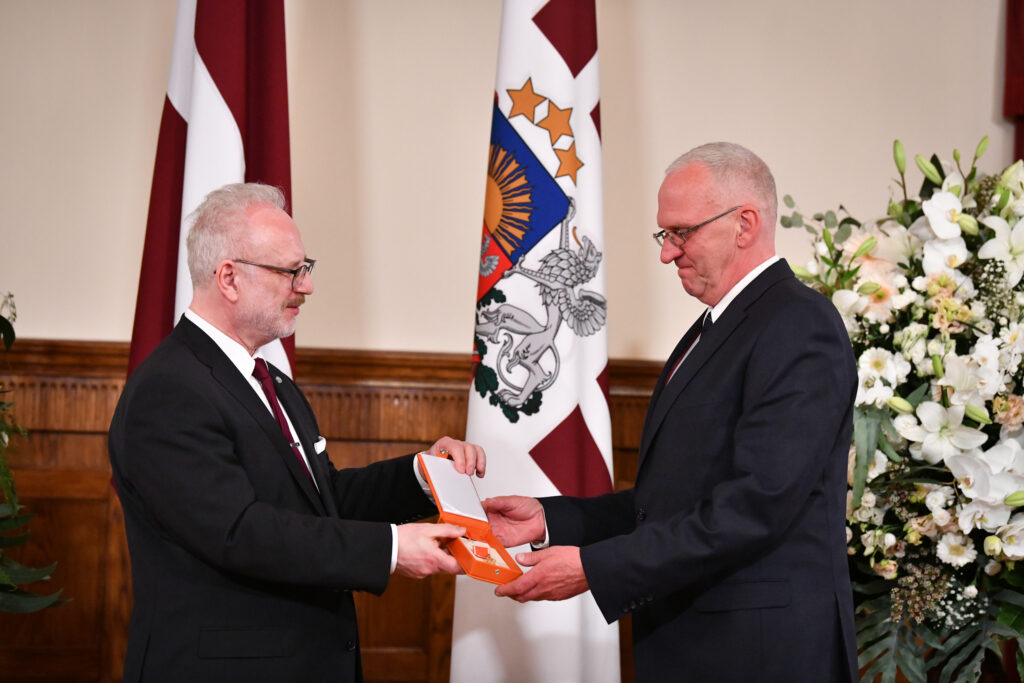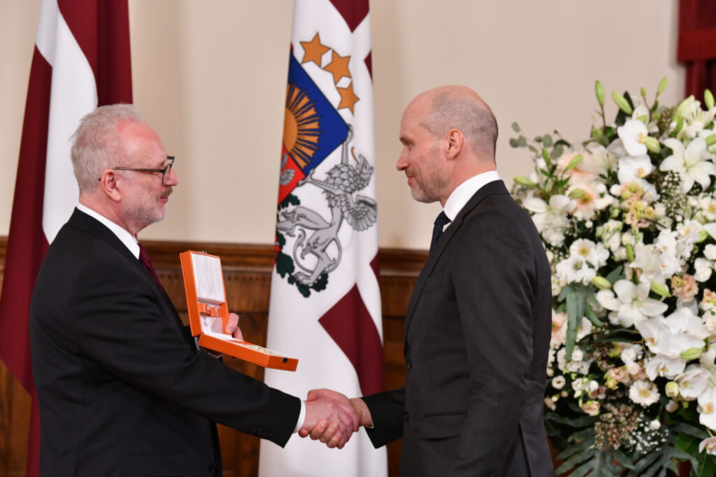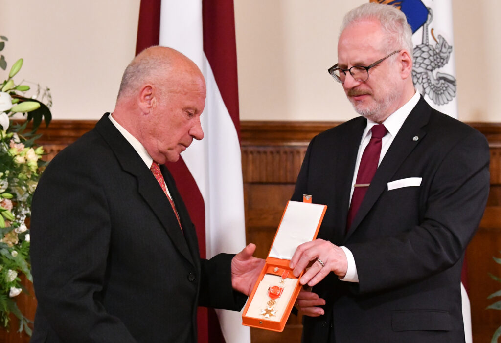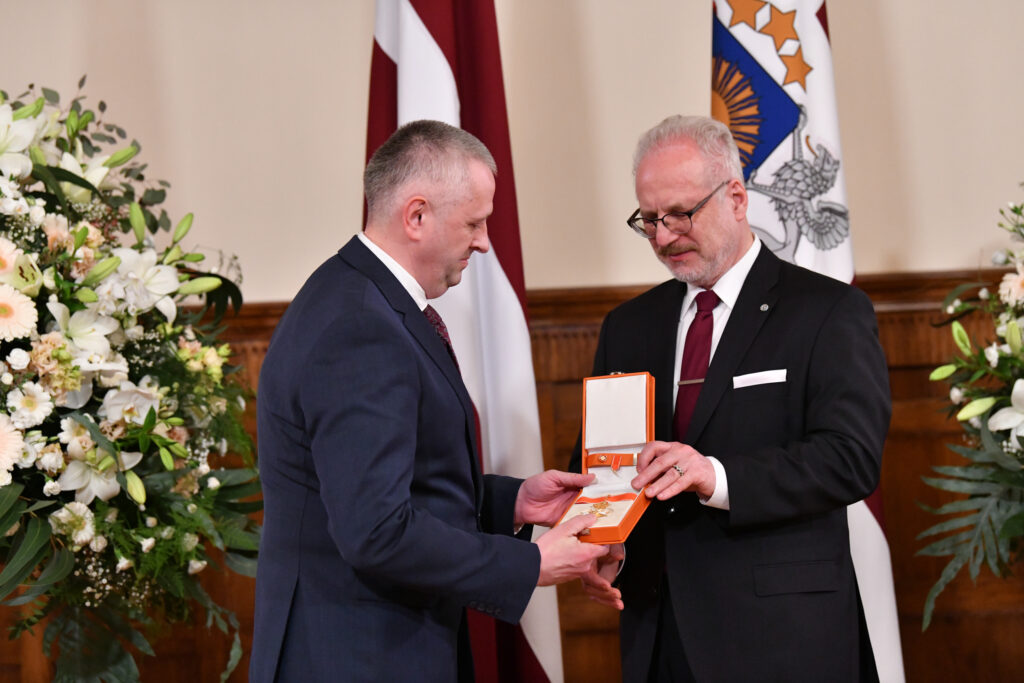 Latvijas Republikas Neatkarības atjaunošanas dienā, 4. maijā, Rīgas pilī notika valsts augstāko apbalvojumu – Triju Zvaigžņu ordeņa, Viestura ordeņa un Atzinības krusta – pasniegšanas svinīgā ceremonija, informē Valsts prezidenta kancelejas mediju centrs.
