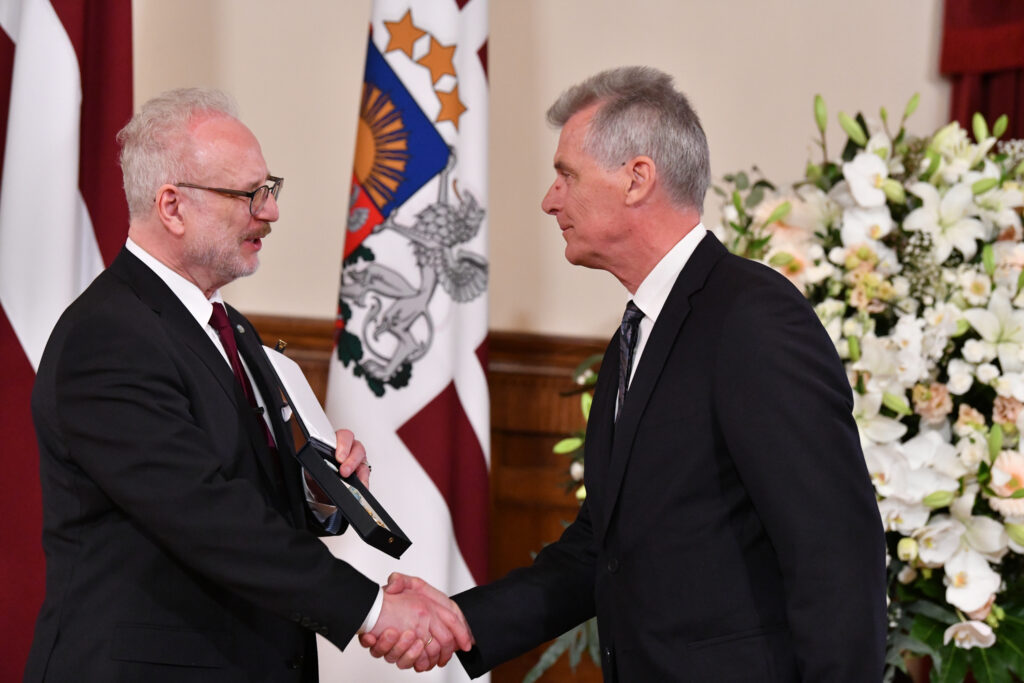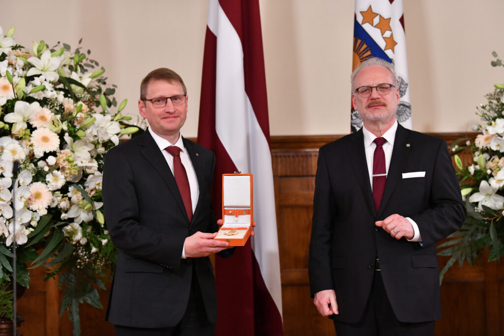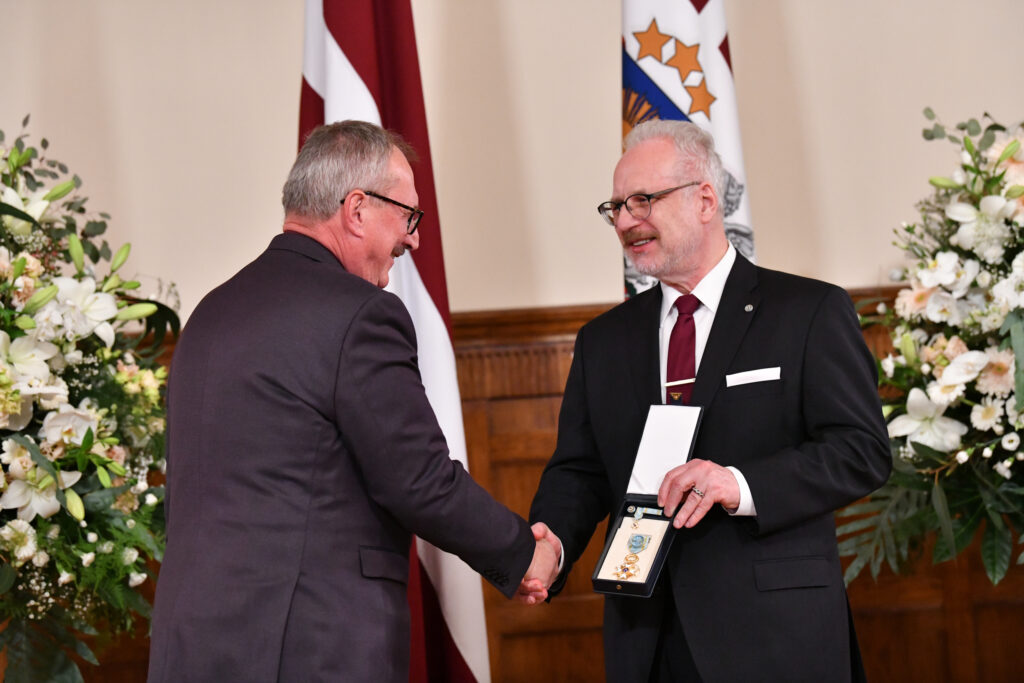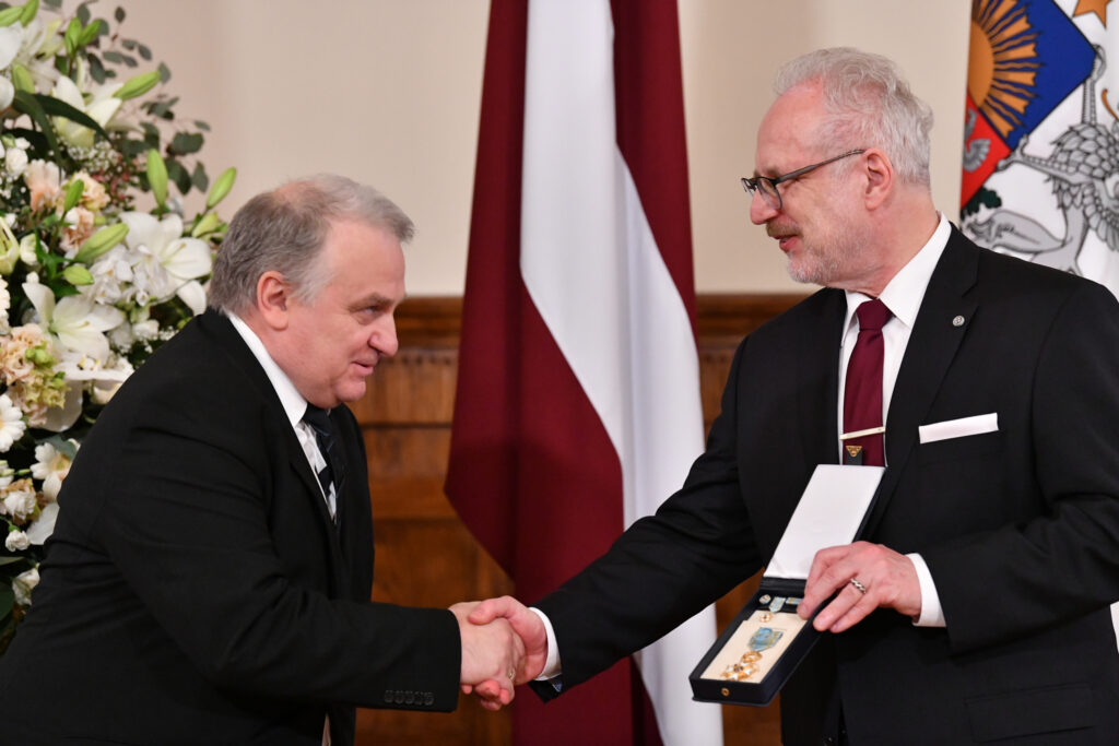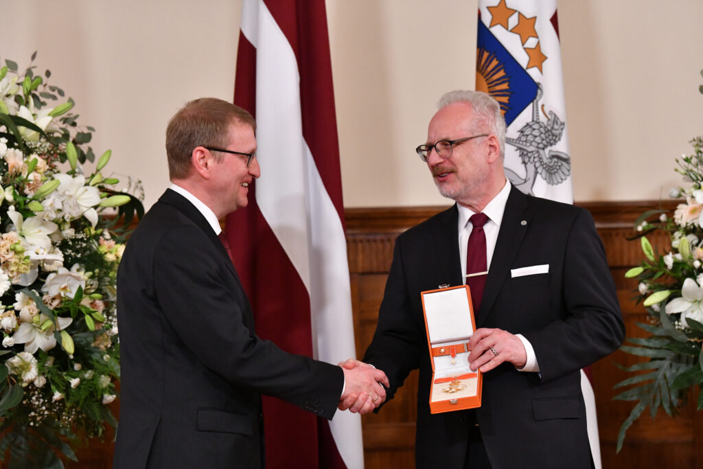 Latvijas Republikas Neatkarības atjaunošanas dienā, 4. maijā, Rīgas pilī notika valsts augstāko apbalvojumu – Triju Zvaigžņu ordeņa, Viestura ordeņa un Atzinības krusta – pasniegšanas svinīgā ceremonija, informē Valsts prezidenta kancelejas mediju centrs.