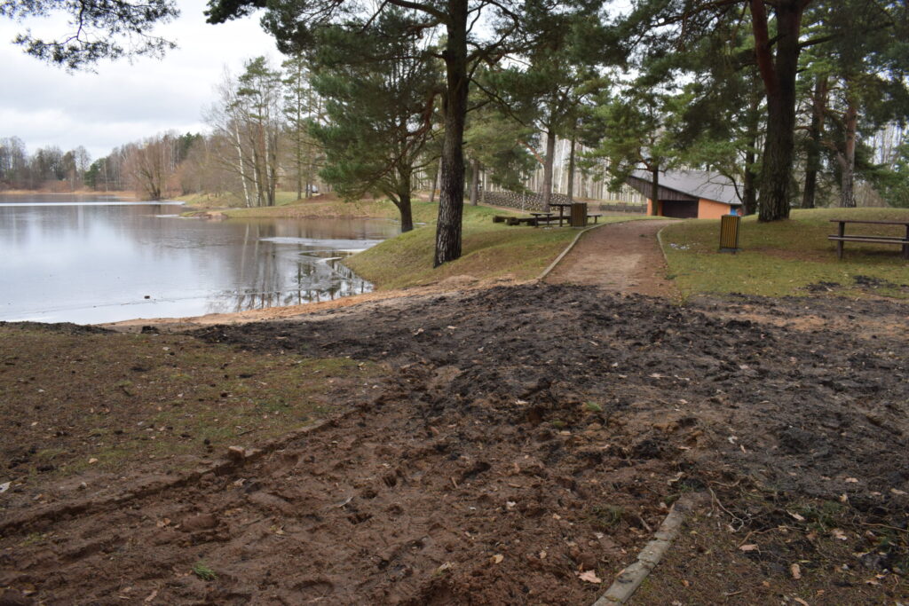 Kā informē pašvaldības vietne «bauska.lv», laikā, kamēr ezers bija sauss, Vecumnieku apvienības pārvaldes darbinieki veikuši krastu attīrīšanu no niedrēm, kā arī atkritumu savākšanu, kur tas bija iespējams. Vietējie iedzīvotāji šai ziņai īsti nepiekrīt, viņi «Bauskas Dzīvei» situāciju apraksta šādi: «Laipas nojauktas, bet betona balstu fragmenti rēgojas ūdenī. Esot attīrīts no meldriem, bet čupas un satrunējuši koka gabali gan ezerā, gan krastā. Apkārtne nekopta, mētājas sasistu pudeļu lauskas, arī skārdenes un vēl nesaplēstas stikla pudeles, tās kāds atkal sametīs ūdenī. Kā tīrīta peldvieta, tā arī daļa pastaigu takas ar ezera grunts saturu aizbērta un atstāta. Šķiet, ka tur darbs nav līdz galam izdarīts, vismaz apkārtnes sakopšanā ne. Līdz ar nojauktajām laipām zudusi šīs vietas burvība un piederības sajūta.»