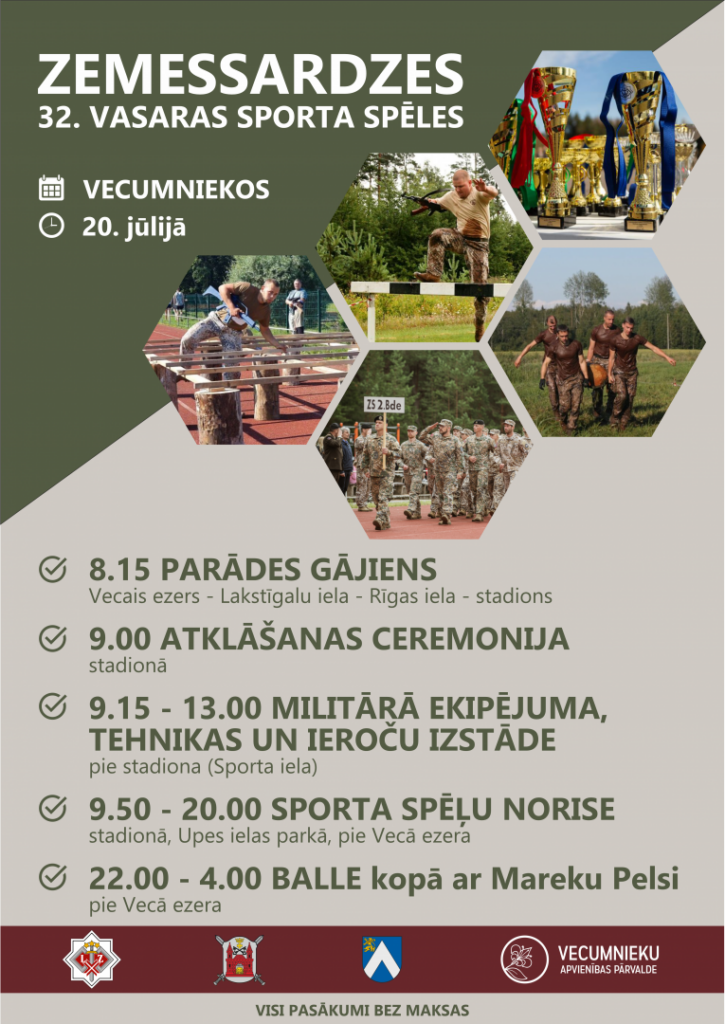 Vecumniekos sestdien norisināsies Zemessardzes 32. vasaras sporta spēles; stundu no rīta būs satiksmes ierobežojumi