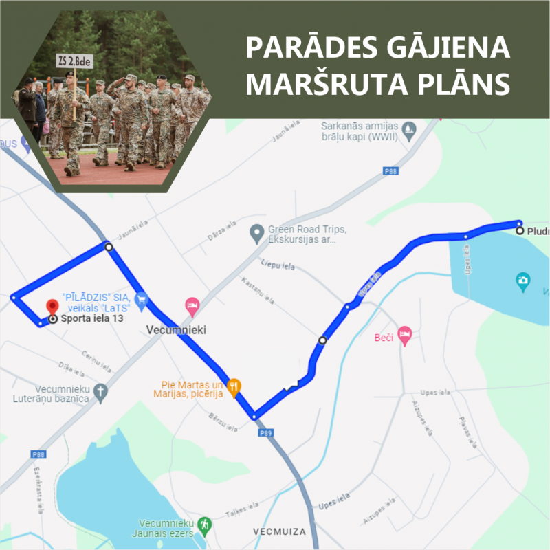Lai nodrošinātu Zemessardzes 32. vasaras sporta spēļu apmeklētāju drošību un komfortu, kā arī ievērojot Satiksmes likuma un Ministru kabineta noteikumu prasības, gājiena norises laikā tiks ierobežota satiksme.