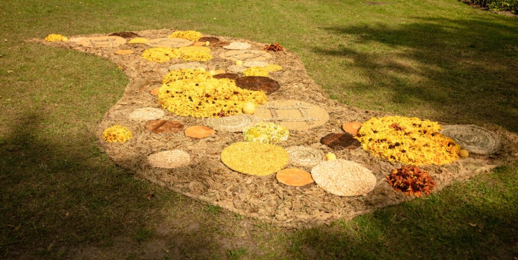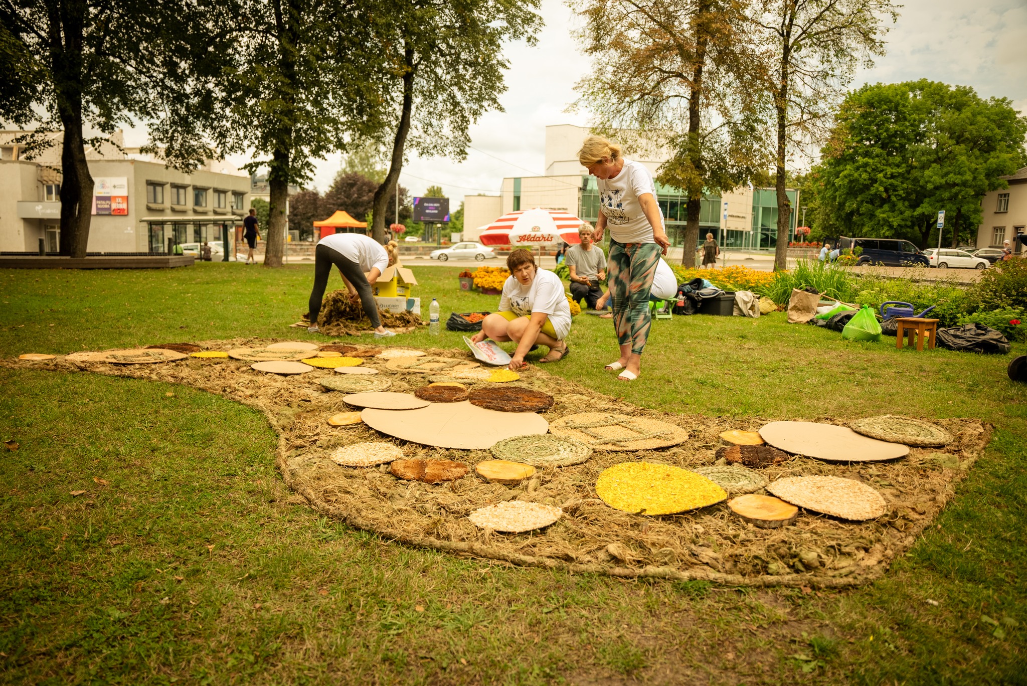 Floristes startēja A grupā, veidojot 10 kvadrātmetru lielu paklāju, kas tapa tikai no dabas materiāliem. Vecumnieku floristu paklāja nosaukums bija “Krāsaini sapņi pār zemi, krāsaini sapņi pār mums”. Dalībnieces izvēlējās materiālus, kas noturīgi pret laika apstākļu kaprīzēm, kas nezaudē dekorativitāti ilgākā laika posmā. No senajiem baltu rakstiem līdz mūsdienu tehniskajiem risinājumiem, darbu vairāk raksturo floristes.