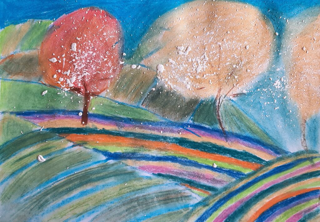 Taču ir bijis vēl vairāk konkursu un sasniegumu. Tā kā šis ir gleznotāja Vilhelma Purvīša gads, tad arī Vecumnieku mākslas programmas audzēkņi iepazina izcilā mākslinieka daiļradi. «Gatavojām gleznošanas stundās darbus konkursam «Purvīša acīm», kas norisinājās Ogrē. Liela sajūsma bija par gūtajiem rezultātiem – 43 Latvijas mākslas skolu konkurencē esam ieguvuši divus Atzinības rakstus. Paldies par radošo darbu manām audzēknēm Annai Stallītei un Rebekai Kovalai!» priekā dalās skolotāja.