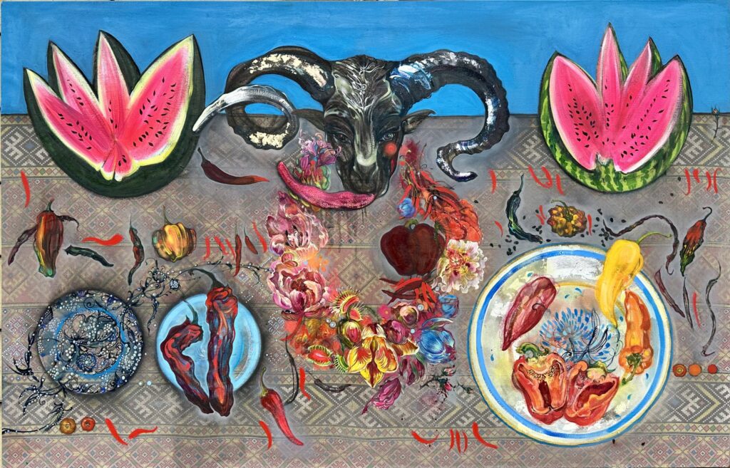 Vecumnieku Mūzikas un mākslas skolā aplūkojama gleznotājas Karinē Paronjancas izstāde “Dzīres”. Otrdien, 9. aprīlī, pulksten 16 interesenti aicināti uz tikšanos ar mākslinieci, portālu informēja Vecumnieku Mūzikas un mākslas pārstāve Anda Sproģe.