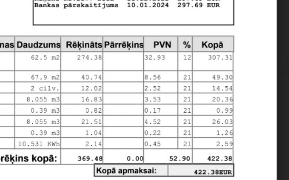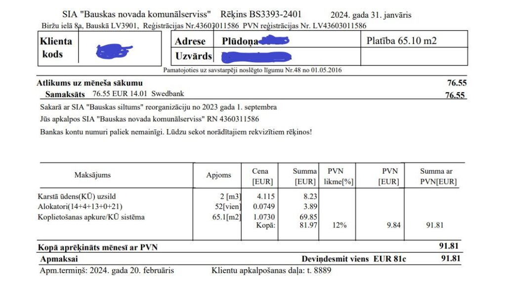 Vecumnieku iedzīvotāja Sindija atklāj, ka mitinās trīsistabu dzīvoklī Dīķa ielā Vecumniekos un tikai par apkuri vien janvārī aprēķināti 337,78 eiro, bet kopā maksājums ir 487,48 eiro, kas ir par 156 eiro vairāk nekā decembrī. Par prāviem rēķiniem ziņo arī iedzīvotāji Misā un Vallē.