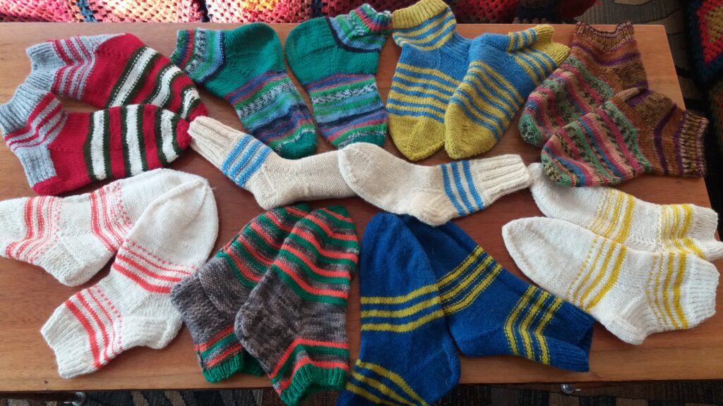 Foto: no Vecumnieku tautas nama krājuma. Pirmie zeķīšu pāru foto jau iesūtīti, un pats pirmais ir pienācis no Jauncodes bibliotēkas Bauskā.