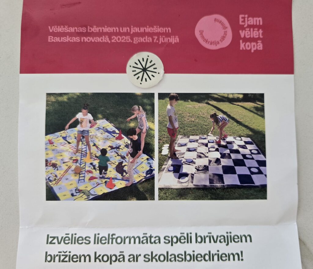 Jaunākā skolas vecuma bērni varēs balsot par vienu no diviem lielformāta spēļu veidiem. Atbilstoši balsošanas rezultātiem, 2026.gada sākumā katra izglītības iestāde iegādāsies izvēlēto spēli.