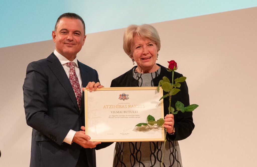 Veselības ministrs Hosams Abu Meri svinīgā pasākumā, kas trešdien, 30. aprīlī, norisinājās Rīgas Stradiņa universitātes Lielajā aulā, pasniedza ministrijas Atzinības rakstus un Pateicības rakstus veselības nozares profesionāļiem. Apbalvoto vidū Bauskas slimnīcas ārste Vilma Butule un novadniece Veselības aprūpes darba devēju asociācijas izpilddirektore Ināra Pētersone, «Bauskas Dzīvi» informē Oskars Šneiders, VM Komunikācijas nodaļas vadītājs.
