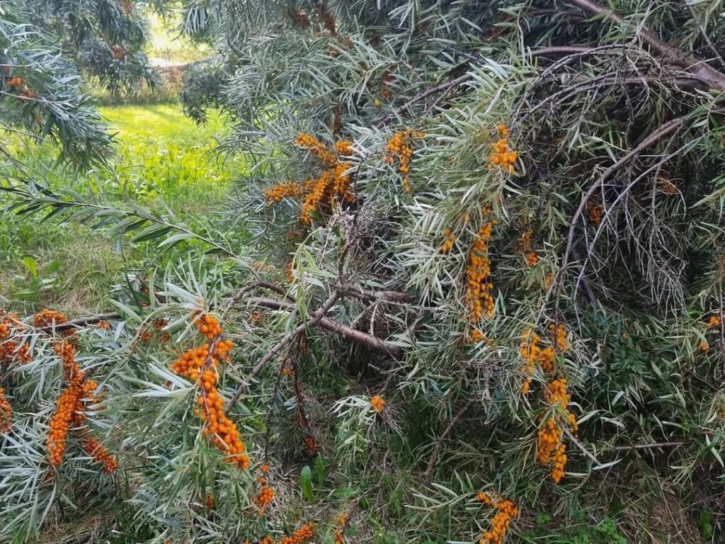 Smiltsērkšķiem zari ne tikai lapaini, bet arī pilni ogu vālītēm. Dažkārt aiz ražas smaguma tie paši aizlūst, bet te vēl «talkā nāca» spēcīgs un ilgstošs vējš. Tagad, kā atzīst S. Icaka, tiek steigts ievākt maksimāli daudz ražas, jo ogas pēc stihijas kļuvušas ļoti mīkstas un neizturīgas. Saimniecība aicina arī pašlasītājus, lai saglābtu vēl vairāk ogu.