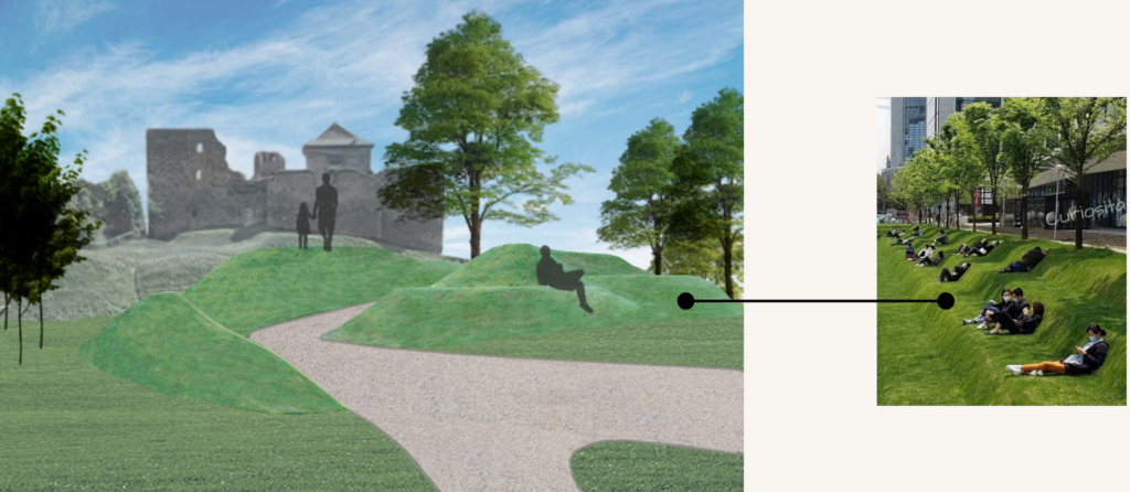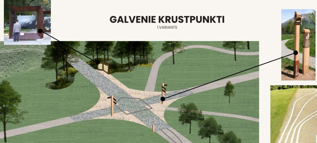 Plānotās versijas atklāja ainavu arhitekte Una Eglīte: «Vēlamies, lai cilvēki ierauga vērtīgākās vietas un skatu punktus. Lai cilvēki apstājas, izbauda, tiekoties ar ģimeni un draugiem, atpūšas pie dabas. Zinām, ka daudzi koki palikuši bez galotnēm, bet ainavas nolūkos paredzam tos saglabāt, jo šie koki izdzīvos un turpinās augt. Nākotnē viss sazaļos un būs patīkama atmosfēra.»