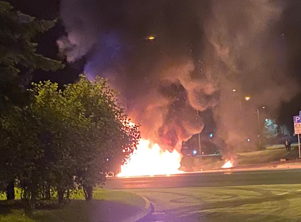 Notikuma aculiecinieki stāsta, ka bijuši dzirdami sprādzieni, braucēji no auto paguvuši izkāpt.