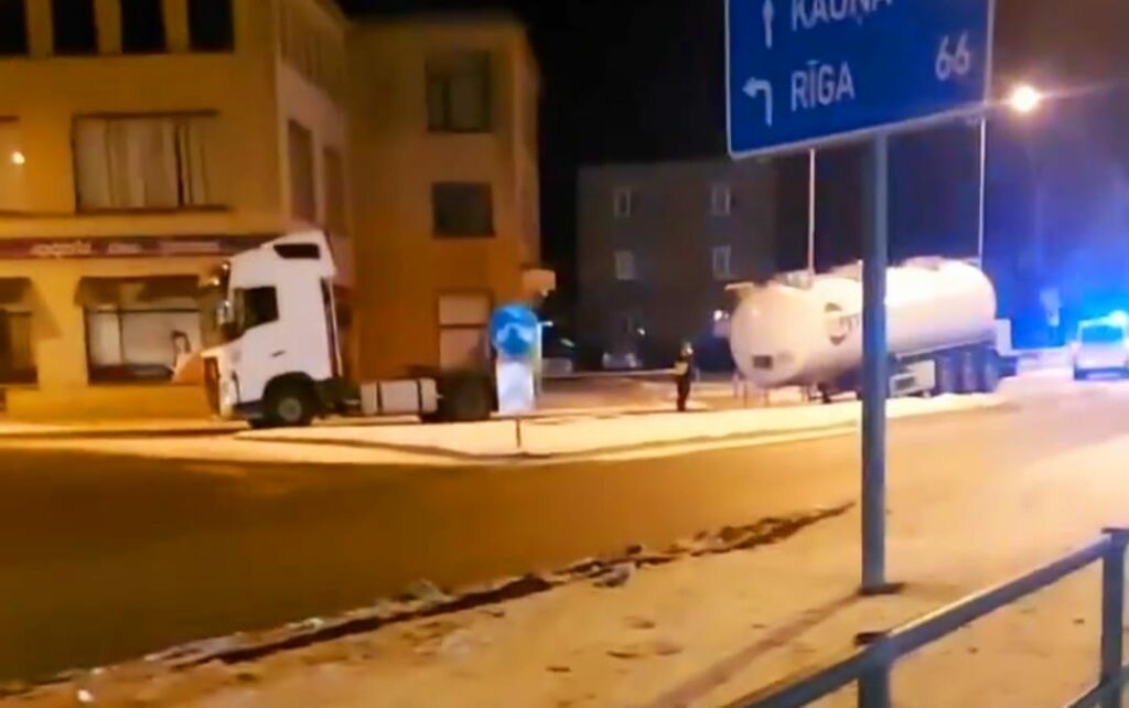 VIDEO: Bauskas centrā kravas auto "pazaudē" cisternu