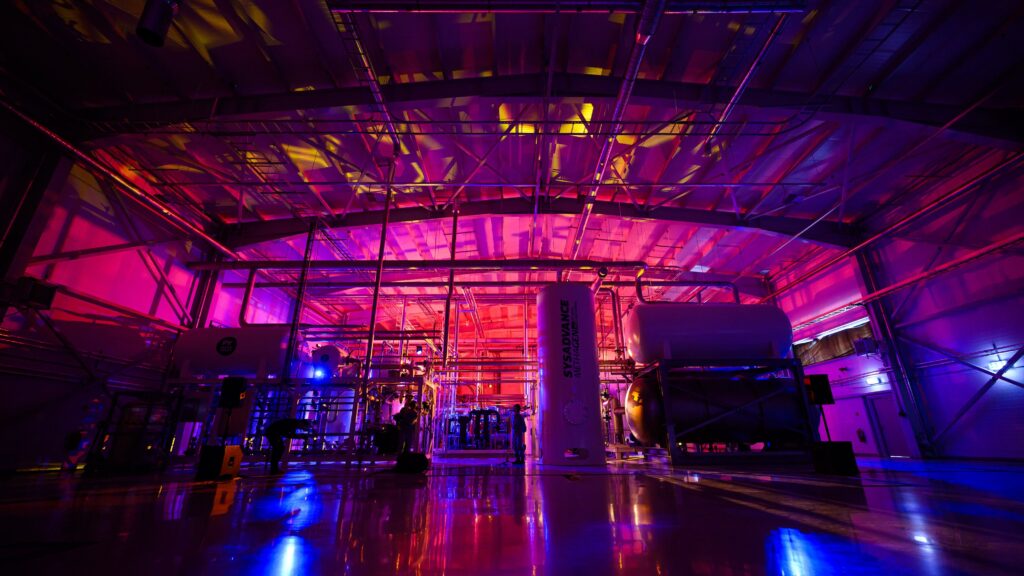 Ar muzikālu kosmisku skaņu performanci atklāta “Balticovo” apakšuzņēmuma “Bovo Gas” biometāna ražotne.  Foto: Publicitātes foto