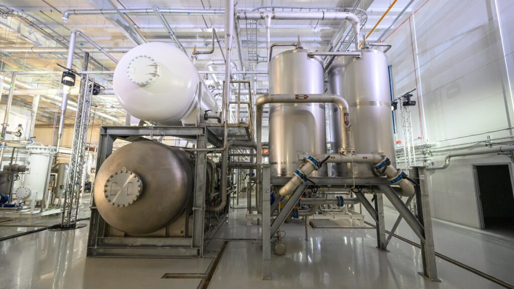 “Tiek novākts nost oglekļa dioksīds vai tautā pazīstamais CO2, kas tiek noņemts nost, arī to mēs plānojam nākotnē sašķidrināt un pārdot jau kā pārtikas gāzi – visām dzērienu nozarēm un arī siltumnīcām, ugunsdzēšamajiem aparātiem, industriālajām vajadzībām,” stāstīja AS “Balticovo” valdes loceklis, komunikācijas un attīstības direktors Toms Auškāps.