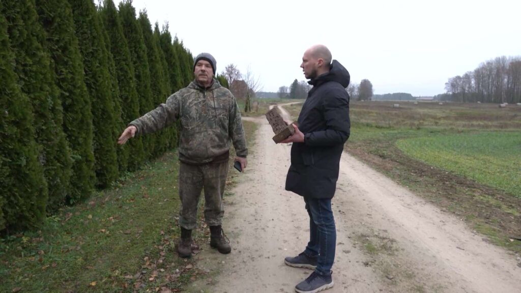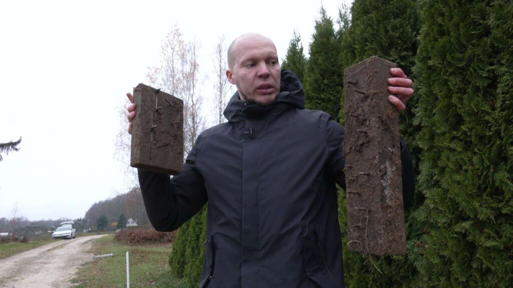 “Uz ceļa šeit uztaisīti divi vaļņi. Tie bija diezgan augsti, kā rezultātā nācās pamatīgi sabremzēt. Es divas riepas laidu pa ceļa malu. Tā arī braucu uz priekšu. Vēlāk pamanīju, ka abas riepas izlaidušas gaisu. Pēc tam atbraucu uz šejieni un atradu šos asumus. Zvanīju policijai, uzrakstīju iesniegumu, viņi safotografēja visu. Nesen man zvanīja izmeklētāja un teica, ka pierādījumu ļoti maz esot, neko nevarēšot iesākt. Esmu pārsteigts, ka tie asumi joprojām ir zemē redzami,” raidījumam stāsta Rolands.