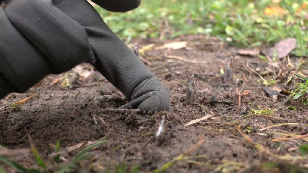 “Bez Tabu” pie bijušā likumsarga mājas viesojās 10 dienas pēc tam, kad Rolands riepas tur pārdūris. Zemē joprojām redzamas naglas. Ne pašvaldības pārstāvji, ne policisti nebija pacentušies novērst apdraudējumu citiem iedzīvotājiem.