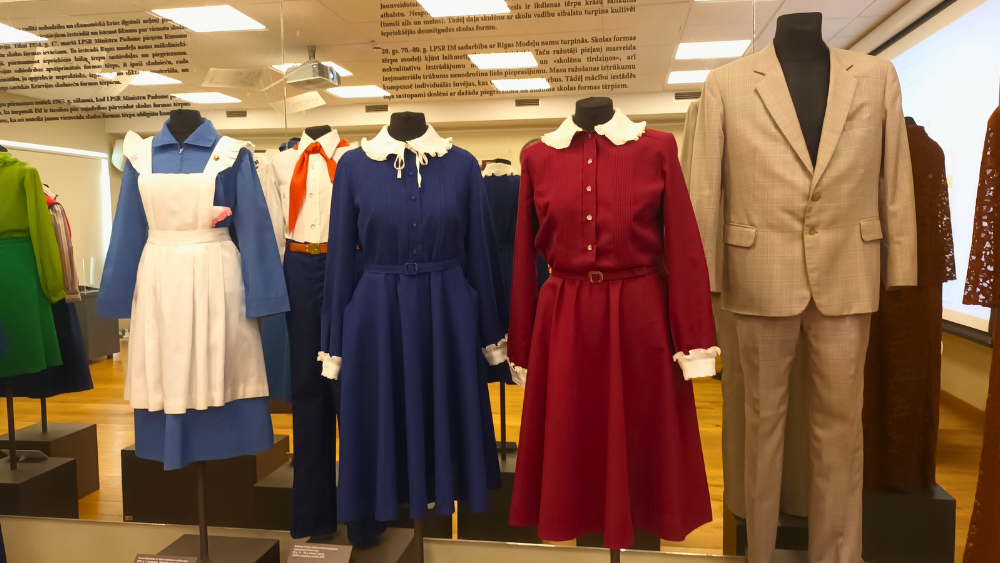 Sākotnēji skolotāju apģērbam izstādē bija plānots atvēlēt vien stūrīti, taču pagājušā gadsimta 60., 70., un 80. gadu sākuma tērpu kolekcija pamazām kļuva arvien plašāka. Nu tajā skatāmi ne tikai vietējie košie šūdinājumi, bet arī tolaik draudzīgo sociālistisko kaimiņvalstu un pat Somijas ražojumi.