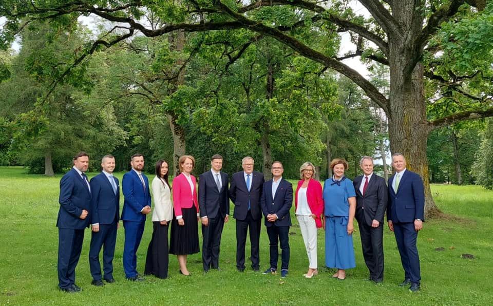 Politiķi pulcējās uz kopīgu foto Mežotnes pils parkā. Foto: no albuma