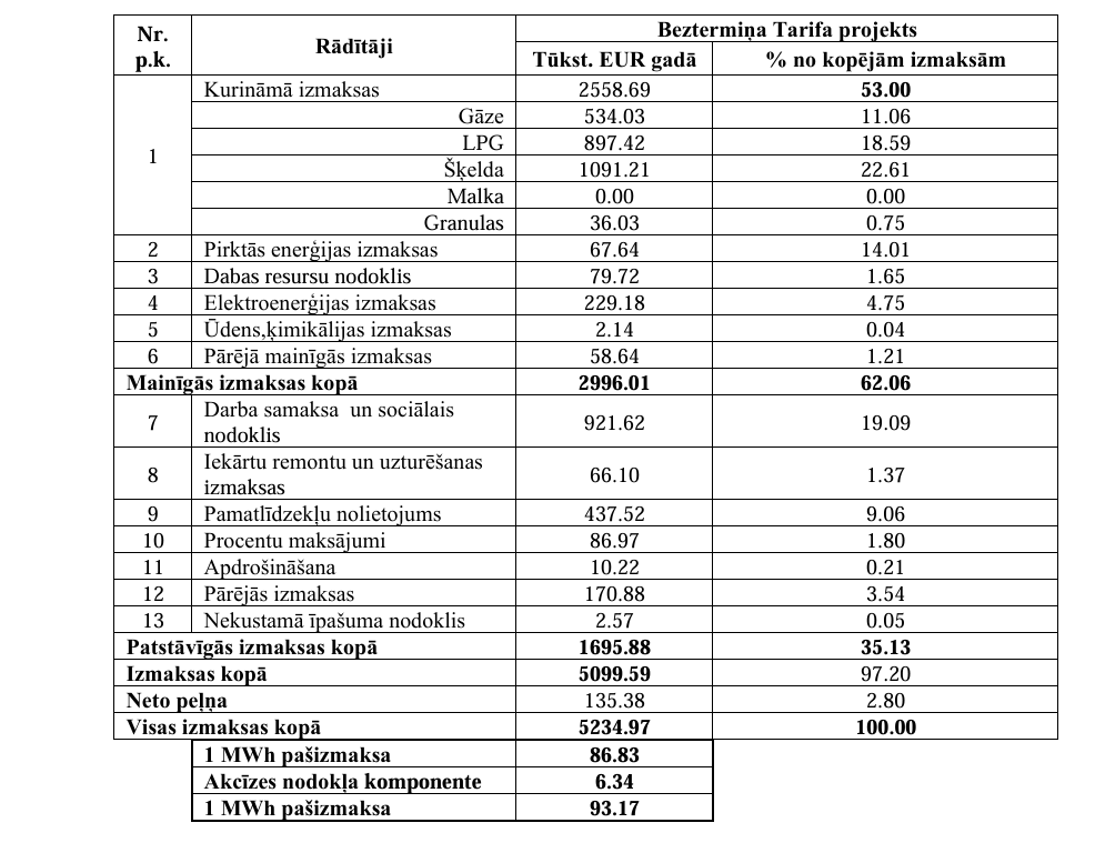J. Miķelsons paskaidro, ka likums “Par sabiedrisko pakalpojumu regulatoriem” nosaka, ka tarifi nosakāmi tādā apmērā, lai lietotāju izdarītie tarifu maksājumi segtu ekonomiski pamatotas sabiedrisko pakalpojumu izmaksas un nodrošinātu sabiedrisko pakalpojumu rentabilitāti. Pakalpojumu sniedzējs tarifu projektā var iekļaut tikai siltumenerģijas ražošanai, sadalei, pārvadei un tirdzniecībai nepieciešamās tehnoloģiski un ekonomiski pamatotās izmaksas, iekļaujot tajās tikai ar šiem darbības veidiem saistītos aktīvus un darbības.