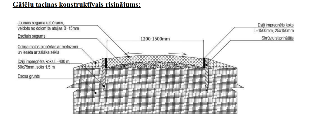 Mežotnes pilskalnā plānots izbūvēt apaļkoka konstrukciju tiltiņu pāri ziemeļu ieejai, atjaunojot lokveida kustību pa vēsturiskā aizsargvaļņa līniju, kas savienotu takas abpus tiltiņam. Vienlaikus takai aptuveni 75 metru garumā tiks atjaunots segums. Tāpat tiks stiprinātas ziemeļu ieejas nogāzes un veikta arheoloģisko izrakumu vietas aizbēršana.