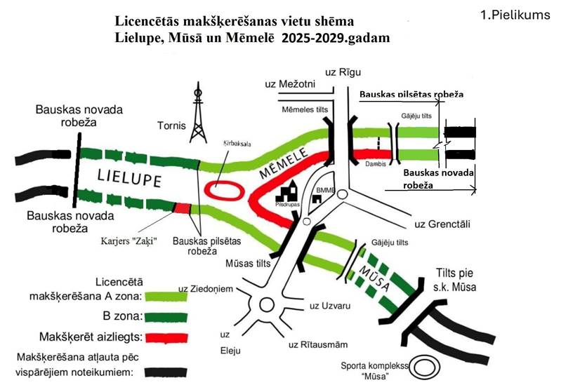Bauskas novada domes saistošie noteikumi nosaka, ka licencēta makšķerēšana noteiktos Lielupes, Mūsas un Mēmeles posmos Bauskas novada administratīvajā teritorijā ilgst no 15. marta līdz 15. maijam.  Tā tiek organizēta ar nolūku uzlabot zivju krājumu aizsardzību un racionālu izmantošanu, kā arī līdzekļu iegūšanai zivju krājumu papildināšanai un makšķerēšanas, kā aktīva un veselīga dzīvesveida, attīstībai.