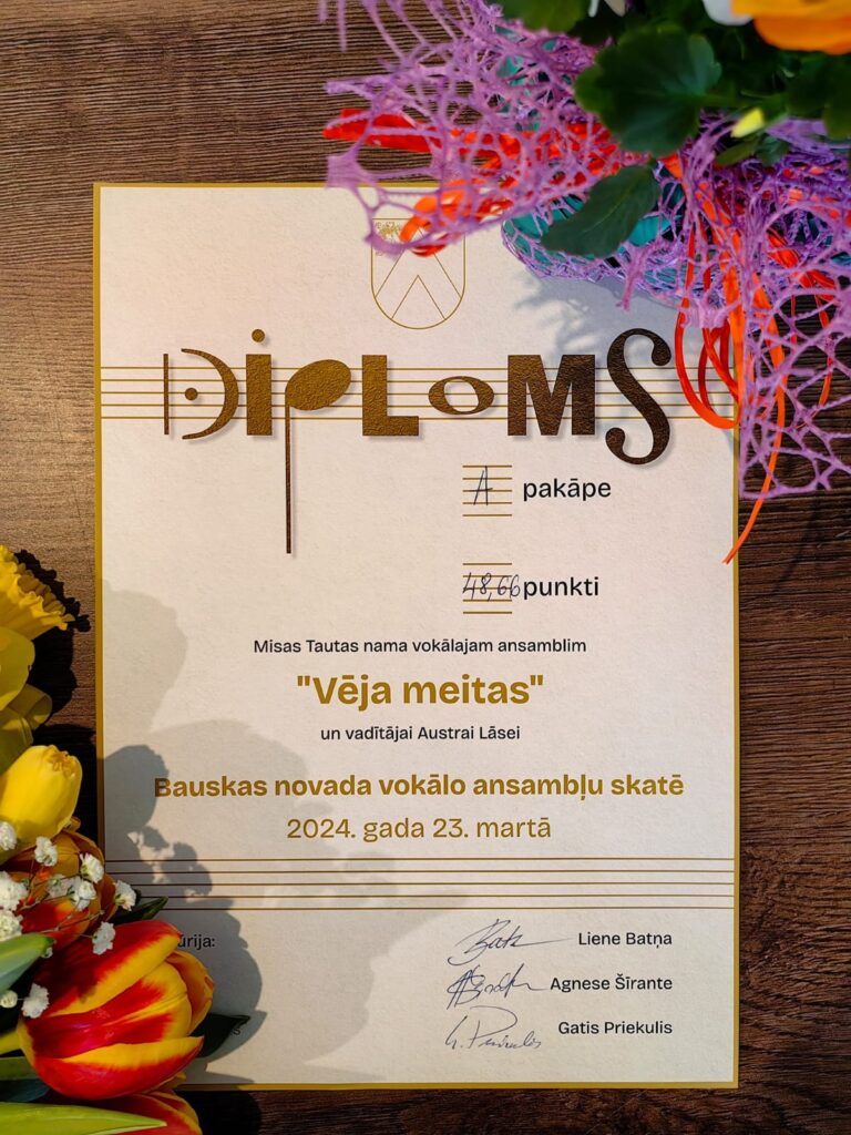 «Skate ir aizvadīta, bet pārsteiguma izjūta vēl nav zudusi – mums gāja necerēti labi. Daudz strādājām, taču ļoti neiespringām, jo mērķis bija vienkārši nodziedāt tik labi, cik spējam,» izjūtās dalās Misas tautas nama vokālā ansambļa «Vēja meitas» vadītāja Austra Lāse, «skatē uzstājāmies pēc ilgākas pauzes, jo iepriekš pandēmijas un pagājušajā gadā manas prombūtnes dēļ nevarējām startēt. Iegūtā augstākā pakāpe ir pacilājoša, tā motivē strādāt vēl labāk.»
