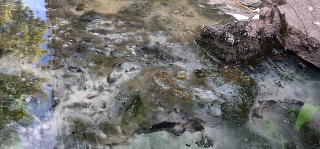 Valsts vides dienesta (VVD) inspektori apsekojuši upi un veikuši ūdens analīzes, pēc kurām secināms, ka šobrīd, mazūdens un sausuma perioda ietekmē, ir savairojušās aļģes, «Bauskas Dzīvi» informē Aija Jalinska, VVD sabiedrisko attiecību vadītāja. Viņa piebilst, ka neseno lietavu ietekmē aļģes ir savēlušās tādos kā kunkuļos. Turklāt, ņemot vērā, ka ūdens līmenis upē ir kritiski zems, sākušies rūgšanas procesi.