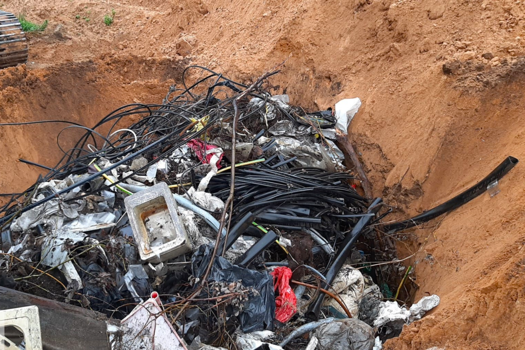 Notikuma vietā atradās ekskavators un kravas automašīna, kā arī bedre, kurā bija redzami dažādi atkritumi, tostarp sadzīves atkritumi un elektrības vadi.