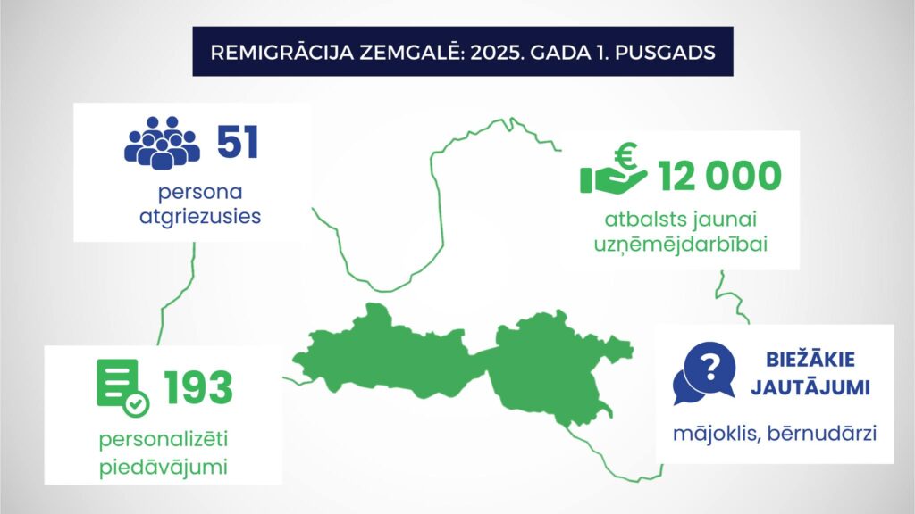 Populārāko pašvaldību vidū Zemgalē ir Jelgava, kā arī Bauskas, Jelgavas, Dobeles, Aizkraukles un Jēkabpils novadi. Lai palīdzētu ārvalstīs dzīvojošajiem latviešiem pieņemt pārdomātu lēmumu par pārcelšanos, remigrācijas koordinatore šajā pusgadā sagatavojusi 193 personalizētus piedāvājumus. Tajos katram interesentam individuāli tiek apkopota informācija par mājokļu pieejamību, izglītības iestādēm, darba tirgus aktualitātēm un uzņēmējdarbības sākšanas iespējām.