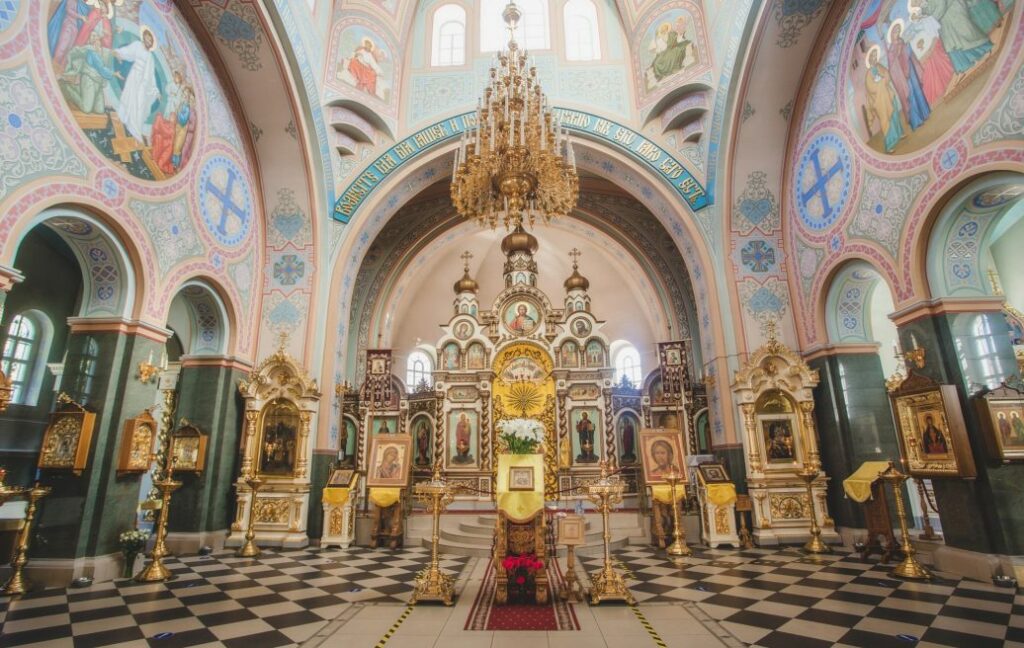 Jelgavas Svēto Simeona un Annas pareizticīgo draudze veikusi katedrāles centrālās telpas sienu un griestu gleznojumu atjaunošanu, izmantojot 1983.gadā veiktās fotofiksācijas materiālus un analoģijas citās pareizticīgo baznīcās. Baznīcas pirmsākumi datējami ar 1711. gadu. 1774. gadā arhitekts Frančesko Bartolomeo Rastrelli projektēja jaunu mūra baznīcu, kura pastāvēja līdz 19. gadsimta beigām, kad to no jauna pārbūvēja pēc arhitekta Nikolaja Čagina projekta. Otrā pasaules kara beigu posmā baznīca tika sagrauta. 20.gadsimta beigās tā tika atjaunota, taču netika atjaunoti iekštelpu greznie gleznojumi.