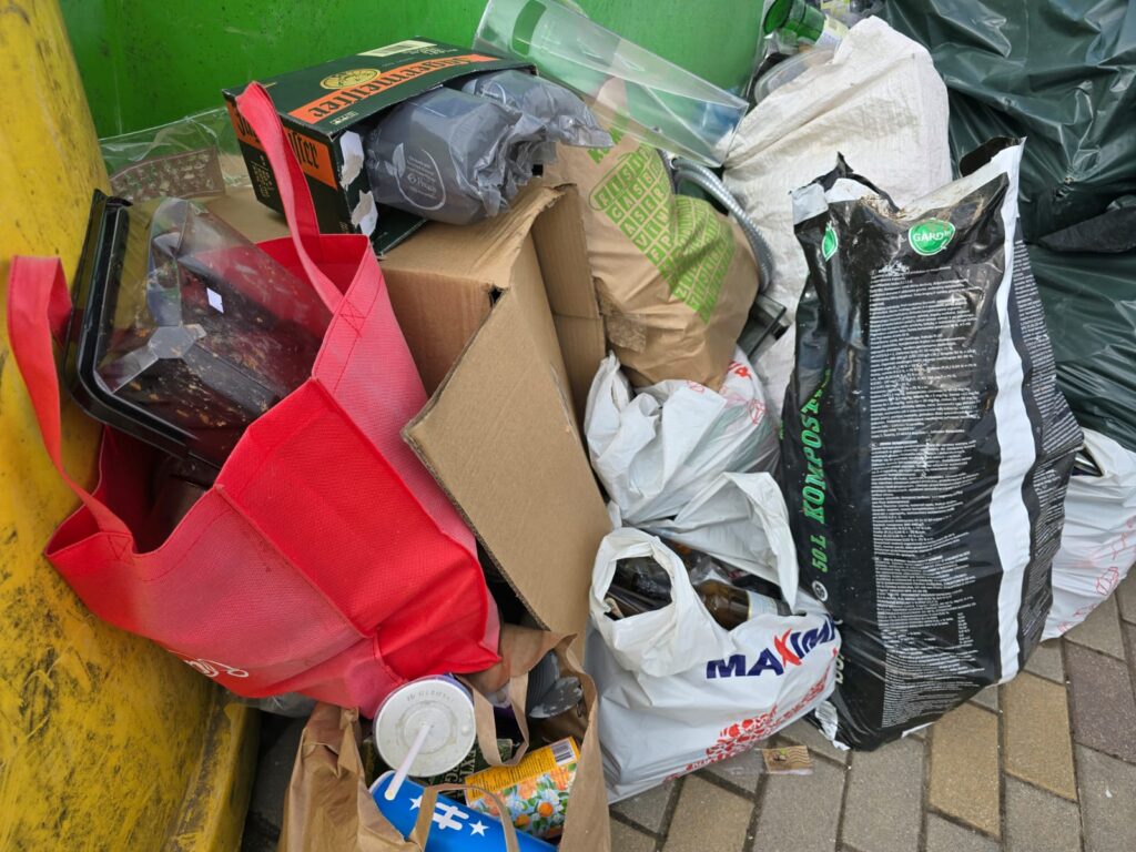 Viņš uzteic, ka ir pieejami šajā vietā atkritumu konteineri, tie ātri piepildās, taču pēc tam stikla taru vai plastmasu noliek pie konteinera, kas mudina citus iedzīvotājus izmest arī citus atkritumus. Izvedot konteinerus, neizved tiem blakus atstātos maisus, kas atkal pamudina negodprātīgos iedzīvotājus izlikt savus atkritumus.