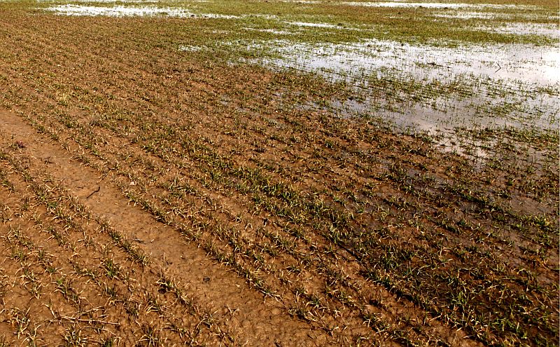 Applūdis ziemas rapšu lauks Jelgavas novadā.