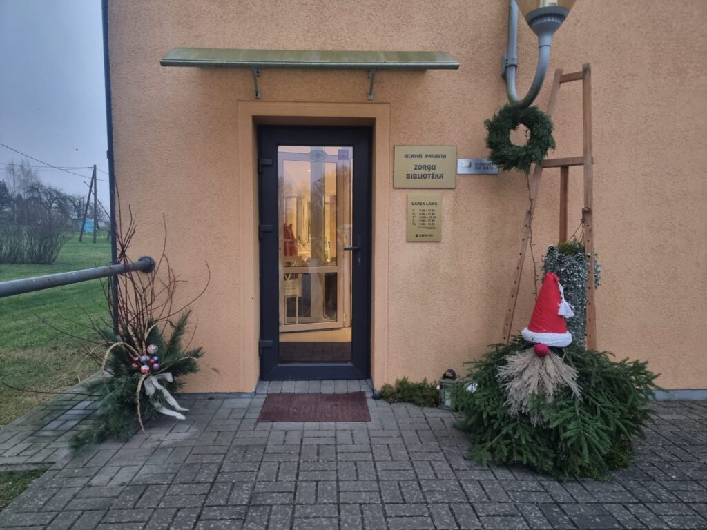 Iecavas pagasta Zorģu bibliotēkā svētku rotājumi gādāti pašu spēkiem ar ciematnieku atbalstu, stāsta bibliotekāre Dace Frinda.