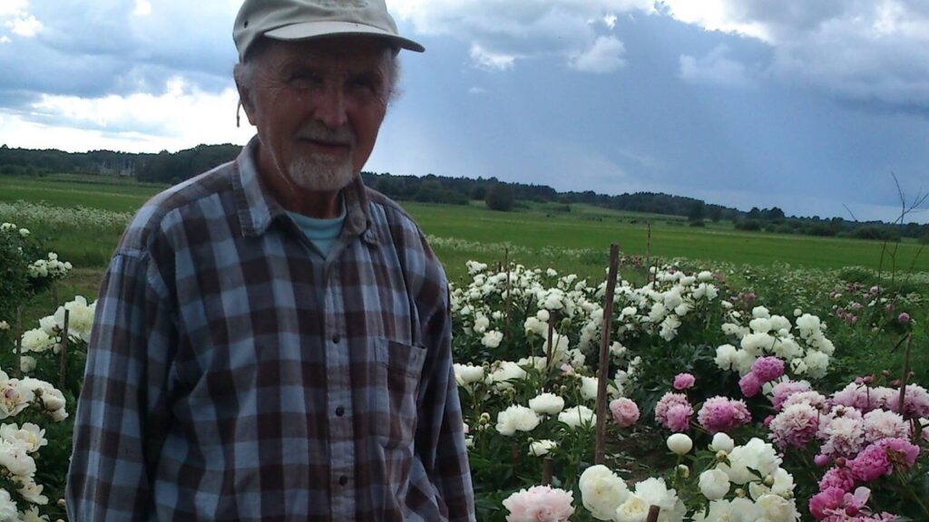 A. Lasmanis pēc profesijas ir mežkopības eksperts, un peoniju audzēšana ir viņa aizraušanās kopš aiziešanas pensijā. Kolekcionāra dārzā pašlaik zied vairākas pildītās šķirnes baltos, rozā, koši sārtos, laškrāsas un vīnkrāsas toņos, dažas ar tonētām maliņām, kā arī dažas skrajo ziedu šķirnes gaišās un tumšās sarkanās nokrāsās ar grezni zeltainām putekšņlapām. Pāris šķirnes jau ir tuvu noziedēšanai, bet citi kuplie krūmi vēl lielākoties ir pumpuros.