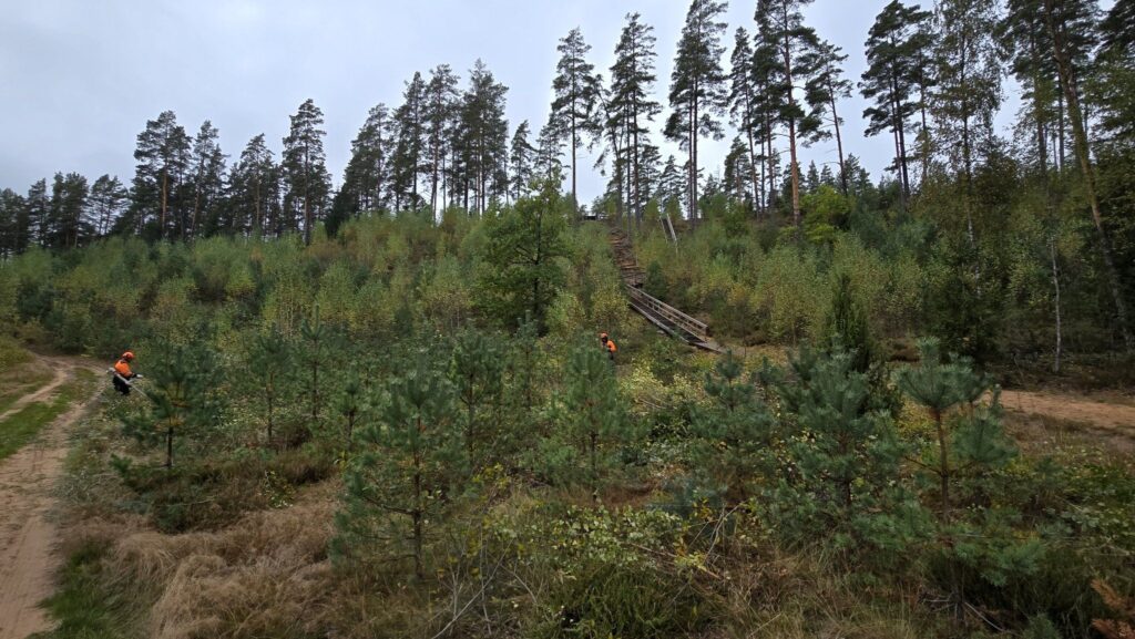 “Pērn rudenī dažādā biezībā esam izretinājuši vidēja vecuma un vecākas priežu audzes, lai šeit mītošajām retām sugām nodrošinātu labākus gaismas apstākļus. Šoruden plānots veikt priežu jaunaudžu retināšanu aptuveni 12 hektāru kopplatībā, veidojot atvērumus un tā nodrošinot mežā vairāk gaismas, kas svarīga dažādām īpaši aizsargājamām un reti sastopamām augu sugām.